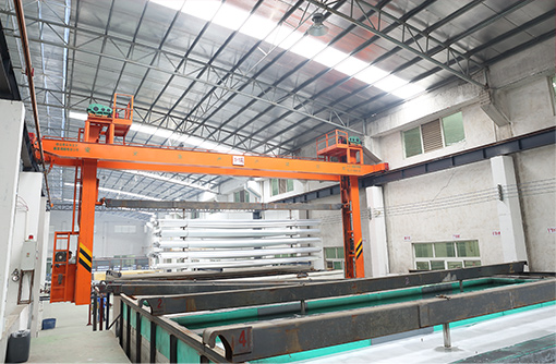 ??公司主要生產設備包含鋁型材擠壓生產線10套,立式粉末噴涂線2套,臥式粉末噴涂生產線1套,臥式氧化電泳生產線1套,真空木紋生產線4套,及相關配套生產設備10多套,其中進口先進設備2套,國內技術領先設備20多套,年生產各型鋁材可超5萬噸。